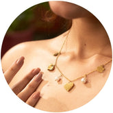 Our jewelry is crafted from ethically sourced brass, plated with premium 18K gold. Each piece is designed to be skin-safe, anti-tarnish, and durable, offering you timeless elegance with lasting quality. 💛
